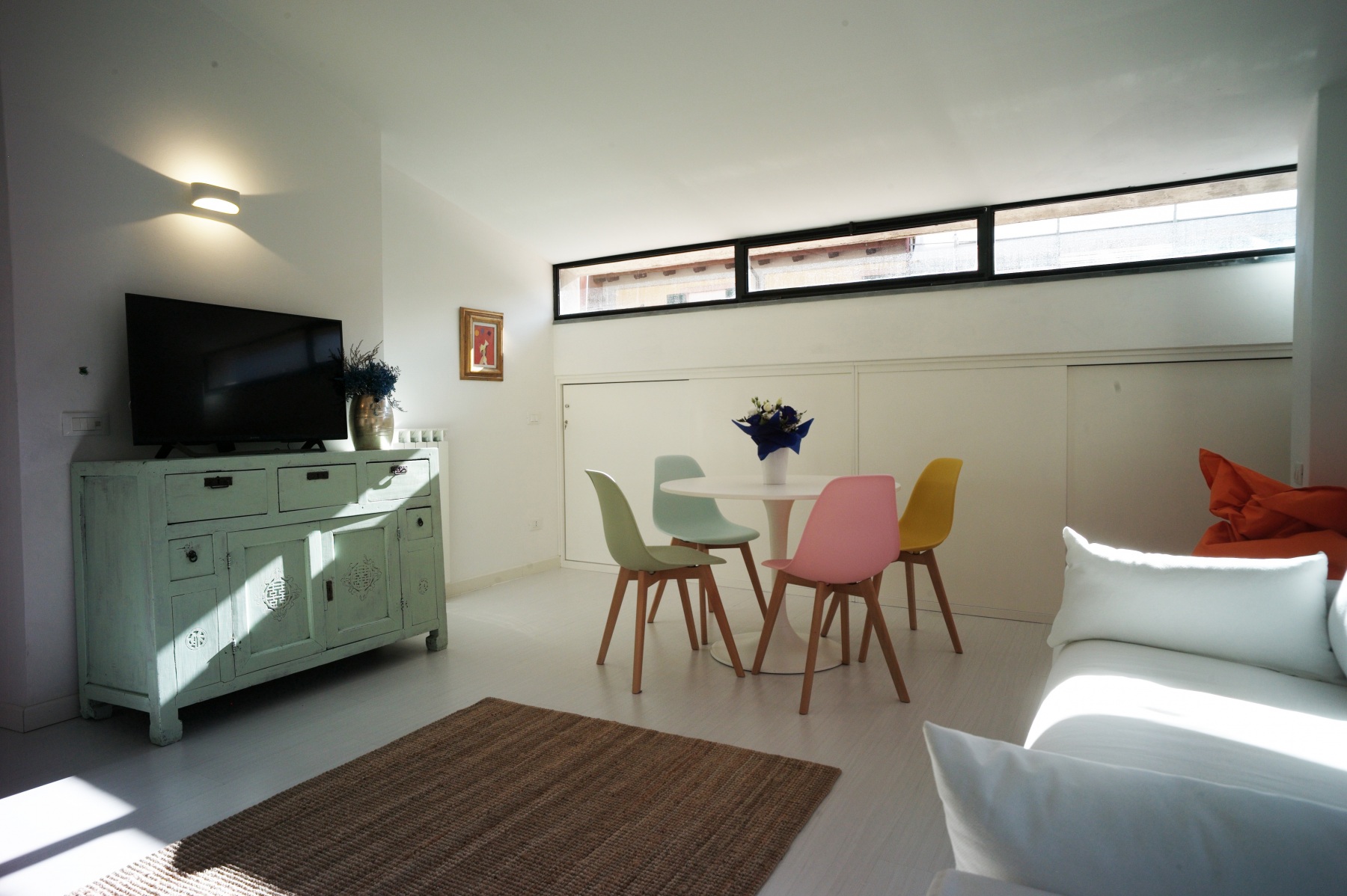 L’atmosfera interna si distingue per la sua essenzialità: ambienti freschi e luminosi, pensati per garantire un soggiorno piacevole anche con soluzioni progettuali semplici e materiali di finitura accessibili. Ogni dettaglio è stato studiato per unire economia dell’intervento e qualità percepita, in coerenza con la destinazione d’uso e con l’identità urbana dell’immobile.